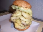 3-The Schnitzel burger. Welcome to Bavaria, Vienna or wherever Schnitzel lives…this burger takes all of the other fried meats and piles them high for your enjoyment – along with ten, count em, TEN slices of bacon. I found this on a website, and once again, who knows how you eat it, it’s just fun to look at and dream…