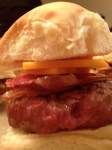 For me, a french slider has crumbled blue cheese mixed into the meat before you grill. What happens is the cheese melts while the meat is cooking, creating a oozy blue creaminess that also forms a bit of a crust…so crusty blue cheese on the outside, and oozy goodness inside. Score! If you want to go crazy you can wipe a slice of foie gras on the bun as well, but I don’t add anything else.