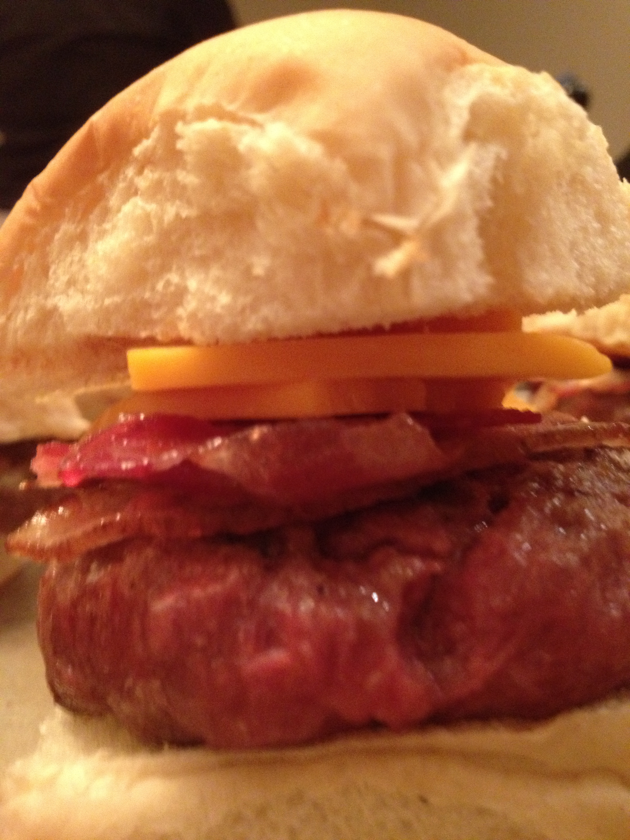 What can I say? Here is a burger from top to bottom. Just toast the bun, cook the burger, add the cheese, let it melt, put it on the bun with the added ingredients, and you are set!