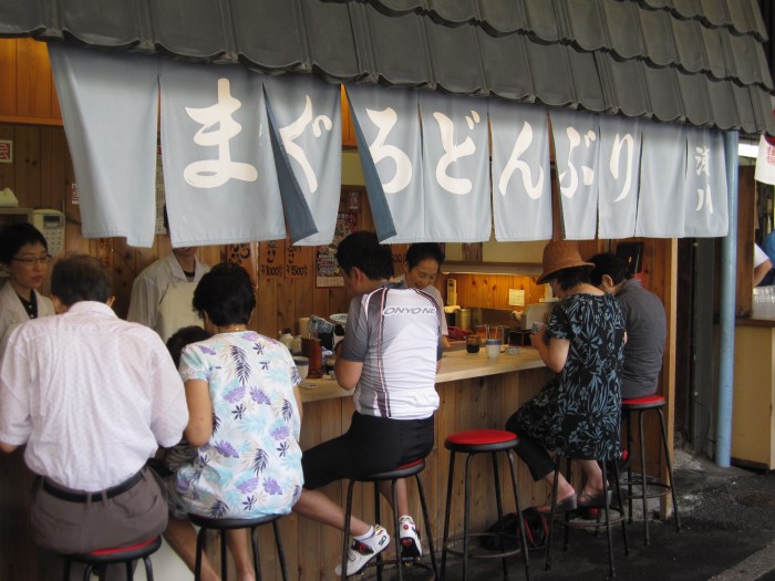 I ate breakfast at the fish market three days in a row – three days of sushi, sushi, sushi. Each stall is operated by master sushi chefs…and older Japanese women who, in my case, served me a bowl filled with yellowtail, sea urchin and rice. They spoke NO english, there were no english menus, and they were, I think, afraid that I was ordering wrong – and since I didn’t speak Japanese, and they didn’t speak english, they just yelled louder at me!