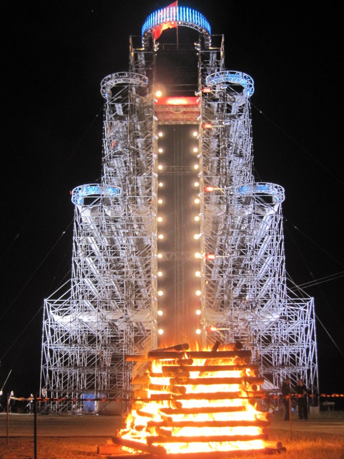 Any trip to Tokyo includes a visit to the famed MT. MIDORIAMA! OK – it’s not a mountain at all, but this is the 27th running of “Sasuke”and it was the most exciting “Ninja Warrior” ever…I was lucky enough to attend the taping – here is what it looks like to be on the set at night, when logs are set ablaze to provide warmth at 4am – as filming continues all night long!