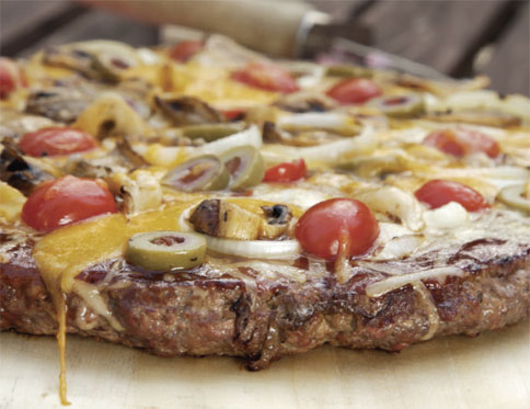 Back to the Bon Appetit article, and a nice looking idea: use a large beef patty as the crust, and load it up with pizza toppings…the meat pizza. Easy to do if this is your thing…and if you get cold: