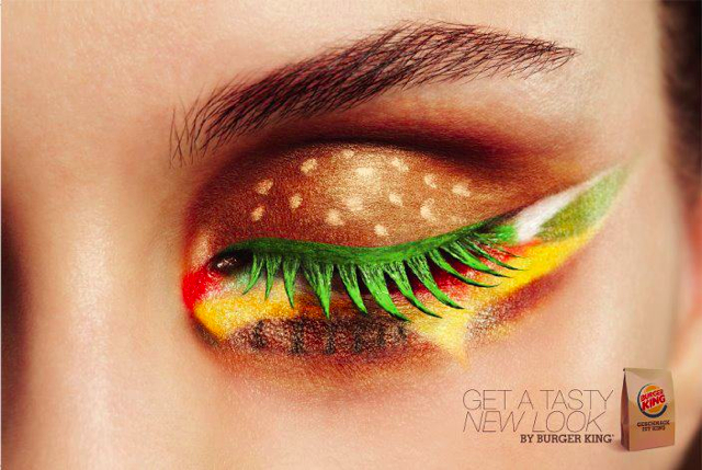 Finally, Burger King in the Netherlands offered this up: an ad for cheeseburgers in the form of eye makeup…nothing more to see here, just enjoy it for the surreal nature of it!