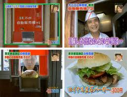 Rocketnews24.com website offers this: a hamburger vending machine at a drive-in eatery in Saitama prefecture in Japan.