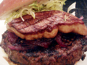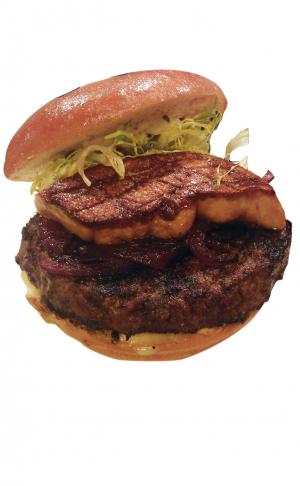 The Billionaire Burger at Holstein’s at The Cosmopolitan of Las Vegas is made with Kobe beef, foie gras, port onion marmalade, frisee and truffle mayo.