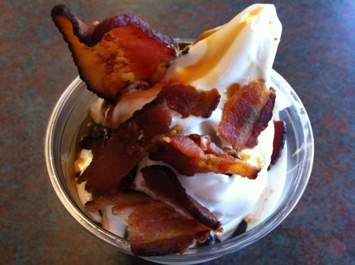 After a successful test, Burger King has announced that they will be offering a bacon sundae – vanilla soft serve with fudge, caramel, bacon crumbles and a piece of bacon nationwide.