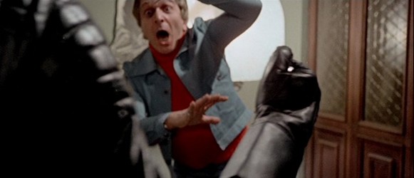 All of the essential “Giallo” trademarks are in place; The faceless leather-gloved killer, mysterious phone calls with cryptic muffled warnings, and as always, the screeching black car appearing out of nowhere (run for your life!)