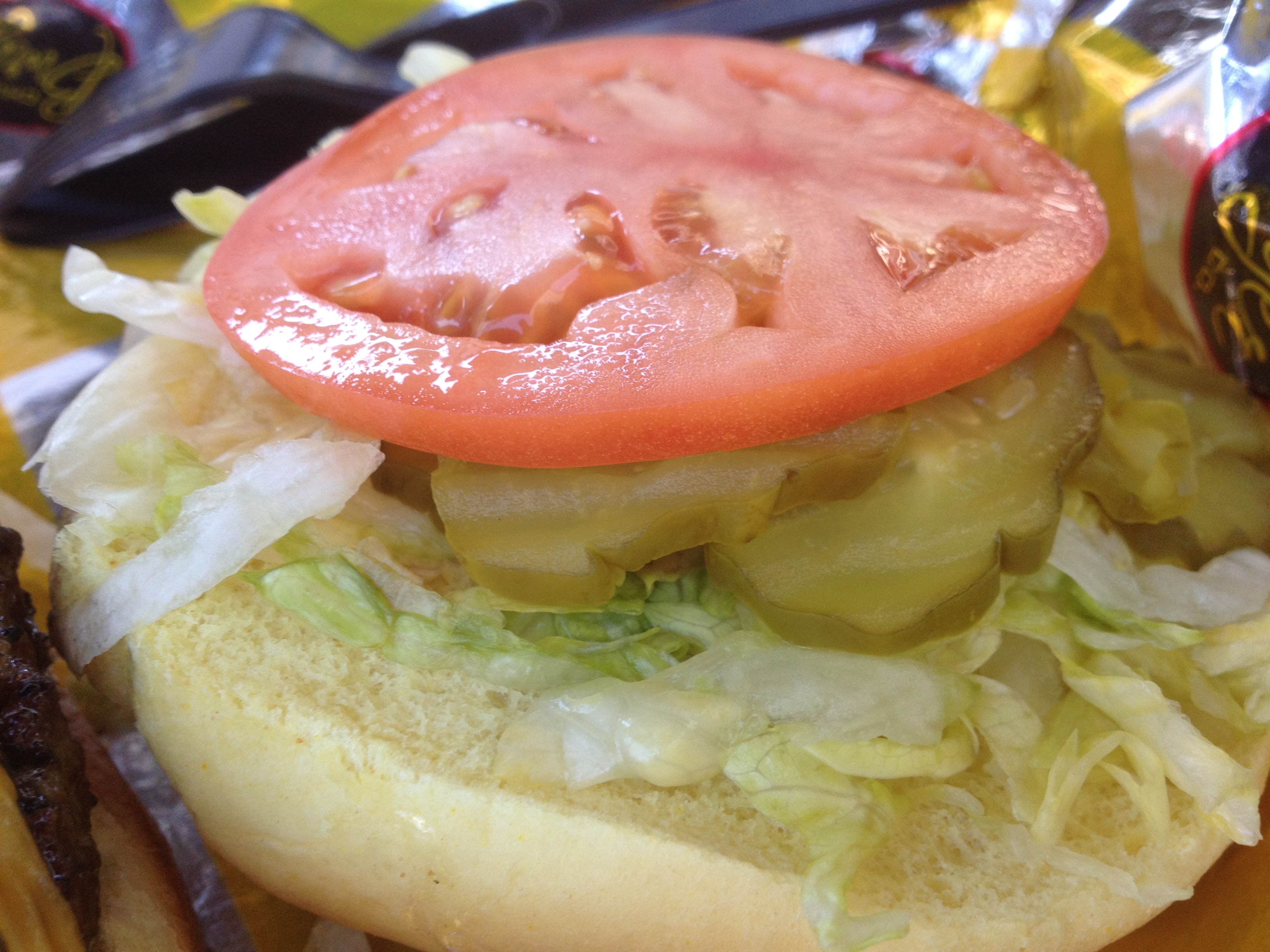 First reaction? Very tasty: the mushrooms are sauteed nicely and are very juicy, the carmelized onions bring alot of subtle smoky flavor to the party, and the tomato and lettuce offer a nice crisp balance.