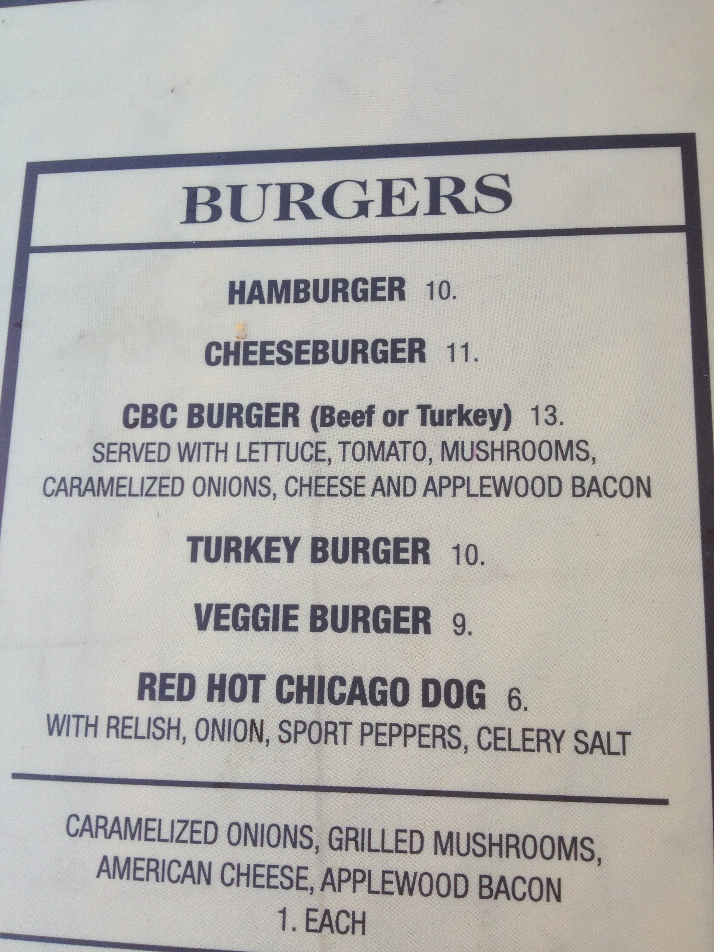 If you really want to see what the kitchen is capable of, you MUST go for the specialty burger, which I did: The CBC burger loads you up with lettuce, tomato, mushrooms, caramelized onions, cheese and applewood smoked bacon….