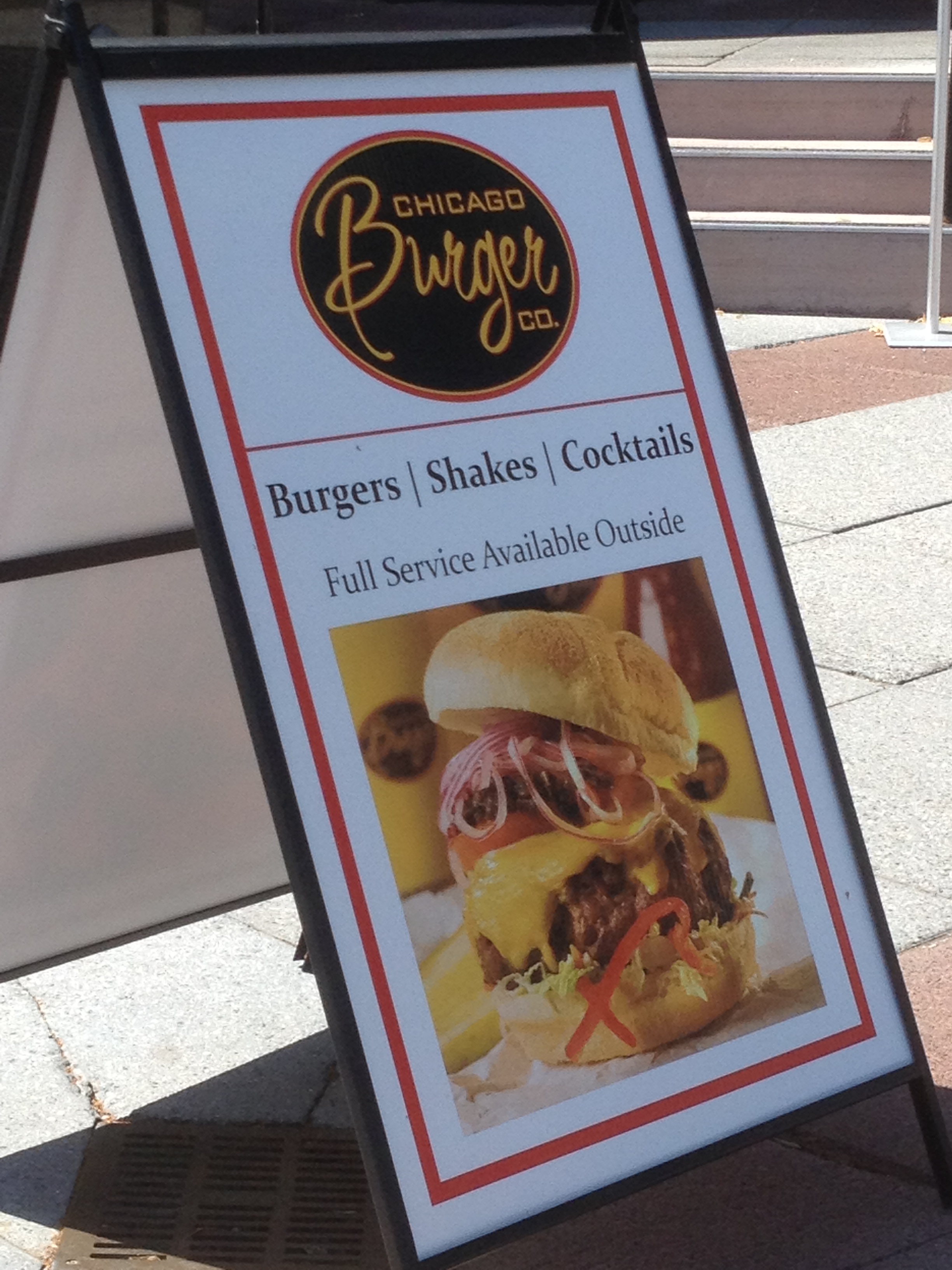 Alongside the water spout, situated on the north side of the river is The Chicago Burger Co., and I grabbed an outdoor seat along the water and checked out the menu: