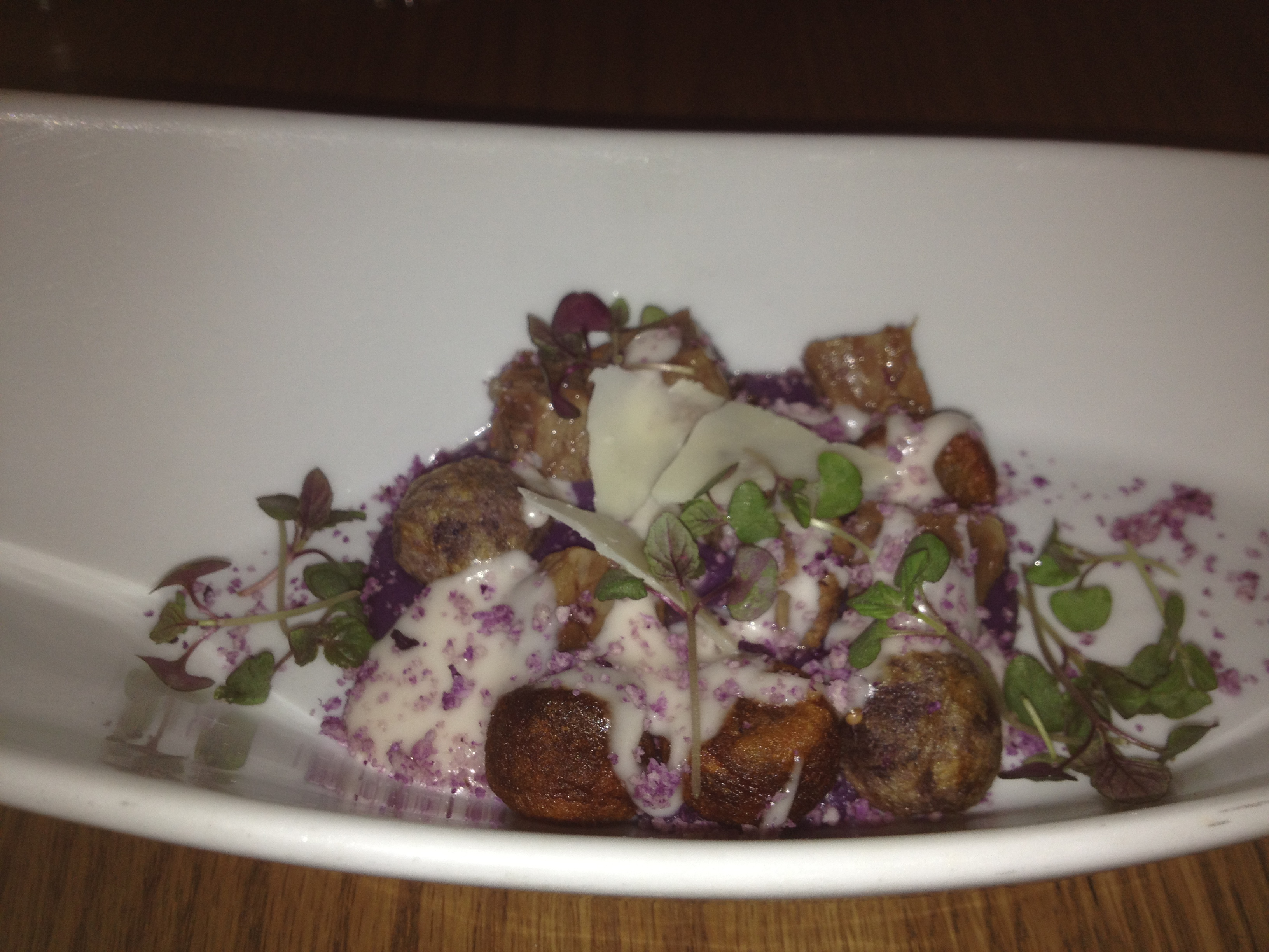 While I love fried oysters, it was this dish that sent me to the moon. Purple potatoes, aged cheddar and pork belly – all served up in a tasty plate of goodness and oh my…