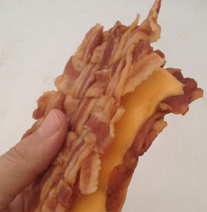 It was delicious, and it reminds me of another classic dish someone whowed me recently: yes, a “bacon weave and cheese” sandwich…