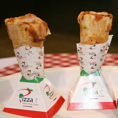 This portable version of a pizza slice is a cone-shaped pizza crust filled with cheese, pepperoni, sausage, and Red Gold® tomato sauce, baked in an oven. And just like an ice cream cone, the cheesy treat comes wrapped in its own paper sleeve for on-the-go handheld ease. Sounds tasty and fairly healthy, considering the next item: