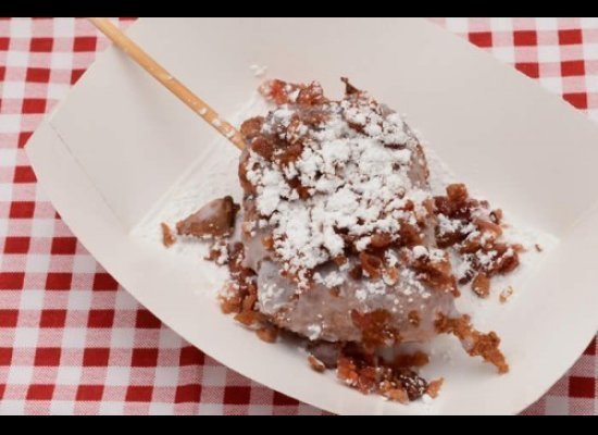 Elvis loved his peanut butter, banana, and bacon sandwiches. Wisconsin paid tribute to this with their latest on-a-stick creation, the Fat Elvis: a peanut butter cup dunked in banana batter, then deep-fried, and served with bacon on top, of course.