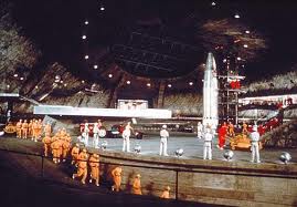 Ken Adam’s volcano set was constructed at Pinewood Studios outside London and consisted of a movable helicopter platform, a working monorail system, a launch pad and a full scale rocket mock-up that could simulate lift-off. 700 tonnes of structural steel and 200 miles of tubular steel were used. Adam once said that the set used more steel than that used for the London Hilton Hotel. The set also used 200 tons of plaster, 500,000 tubular couplings and over 250,000 square yards of canvas were all employed in the construction of the set which cost just over $1 million.