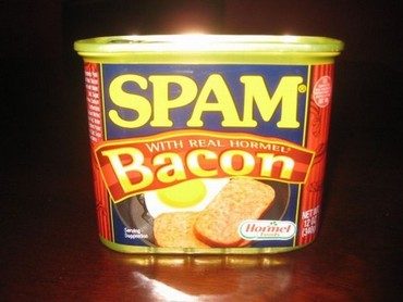 OK, this even confuses ME: I thought Spam WAS bacon! Hey, whatever it is, I am about to do THIS to it: