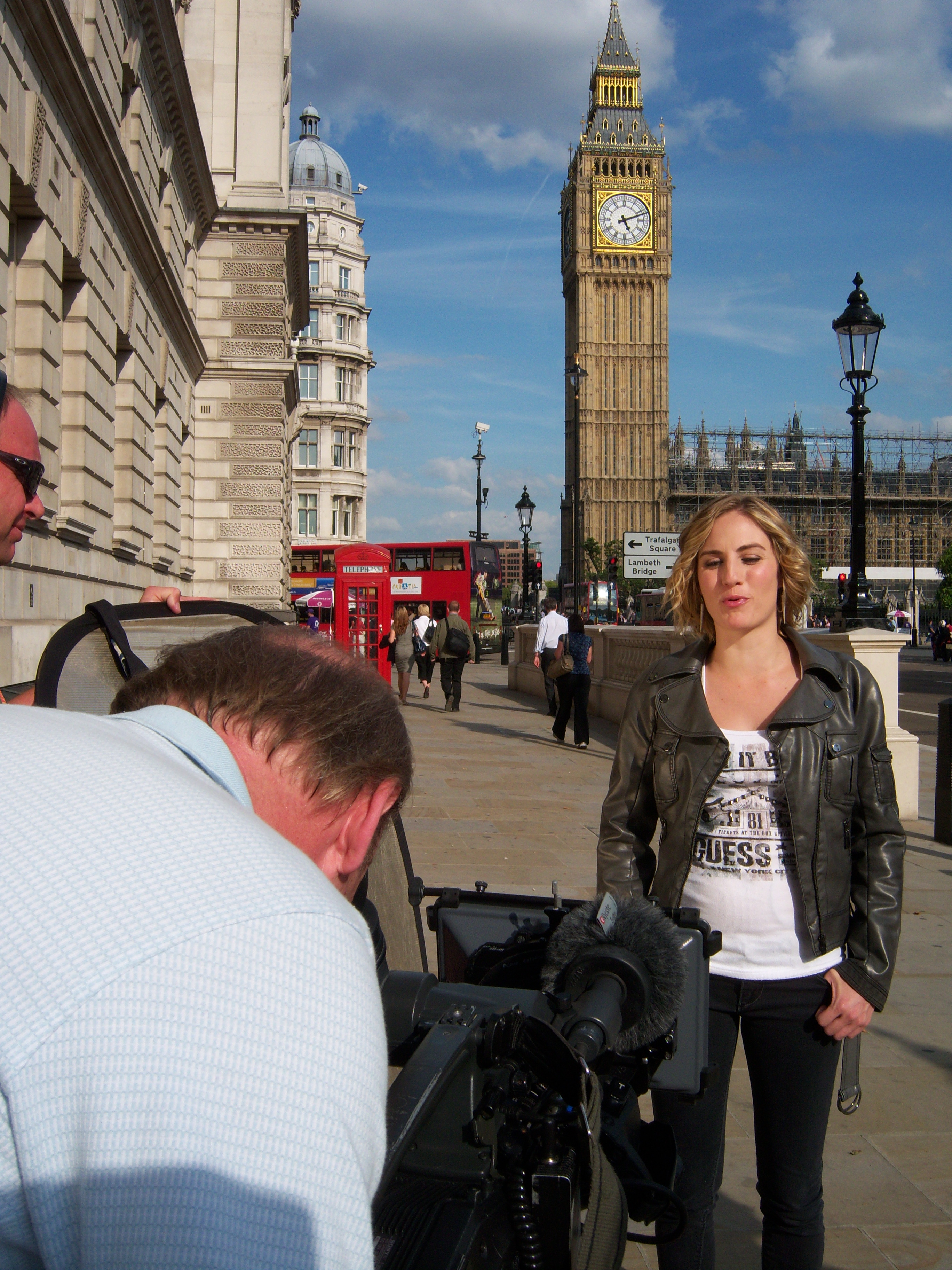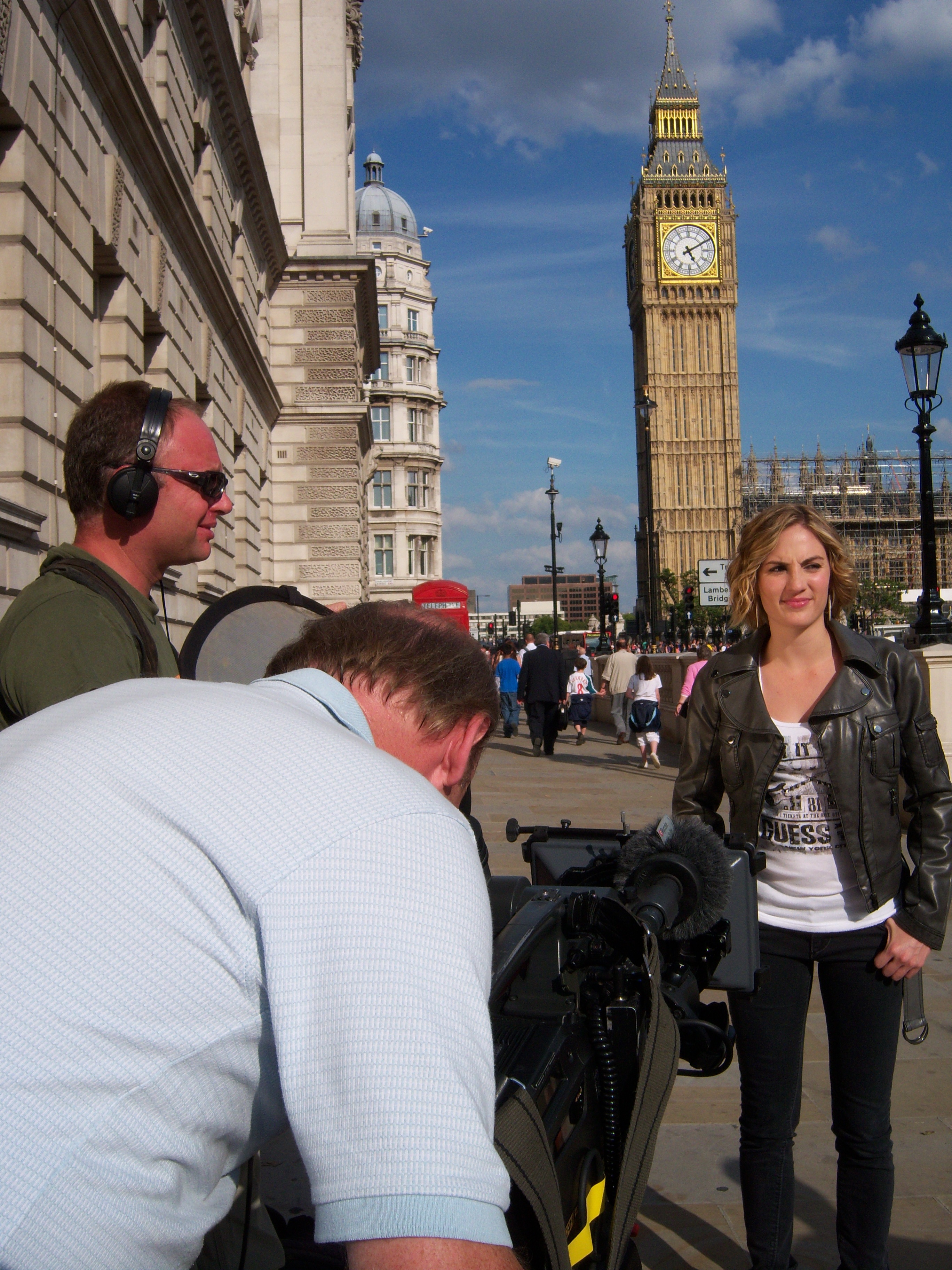 I was lucky enough to travel to some fun locations with Alison, a terrific Host who also has a great sense of humor and love of adventure – so we always have a great time filming! On this trip, we were in London covering a sporting event, and we also decided to film at some of London’s most iconic locations…including the iconic London Bridge…