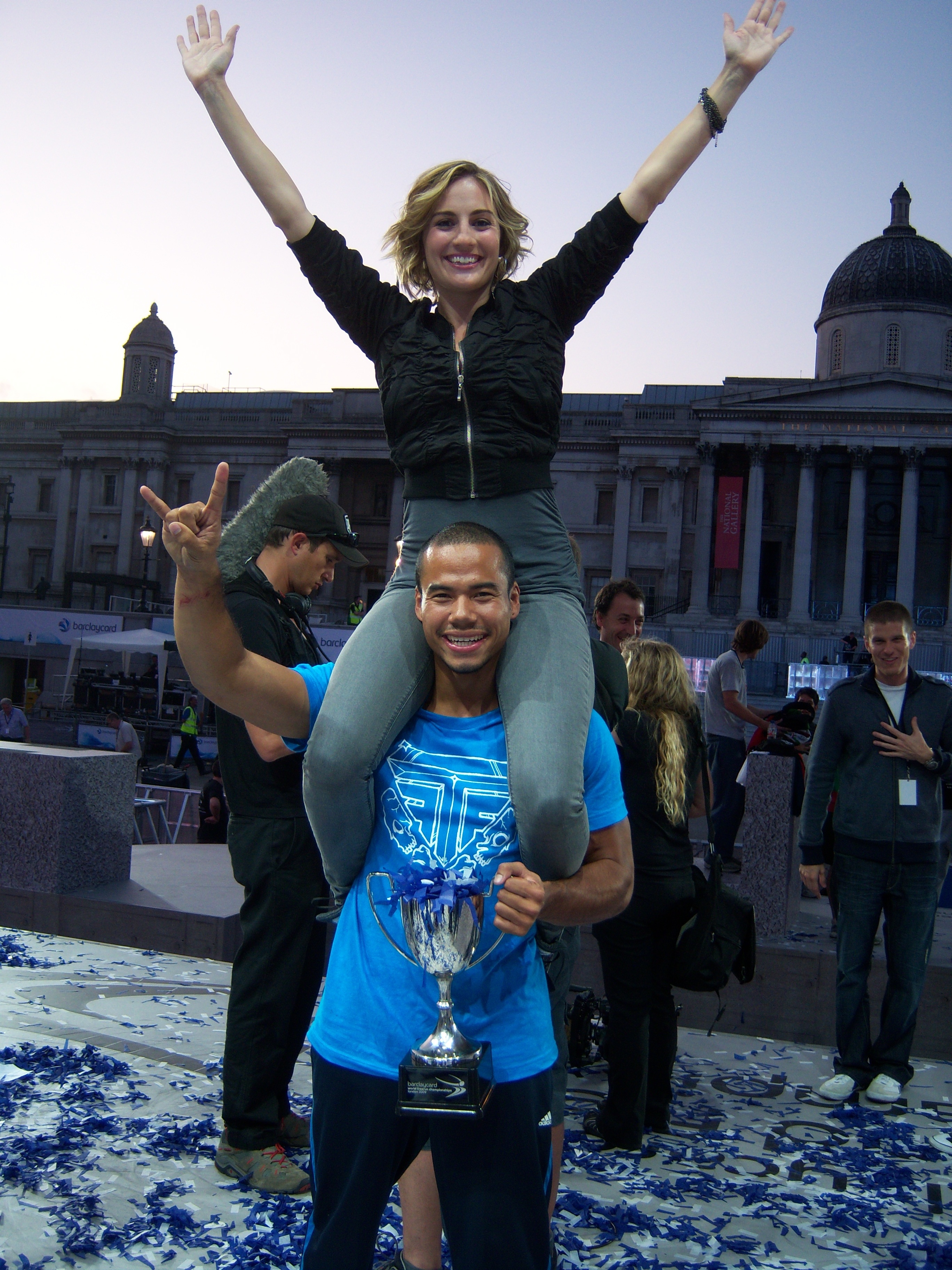We had two days to film a dozen stand ups plus a couple of athlete profiles around London, so we were always on the move…Ross was there to work with Alison on scripts for the standups, and she loved working with him…here is the evidence of that: