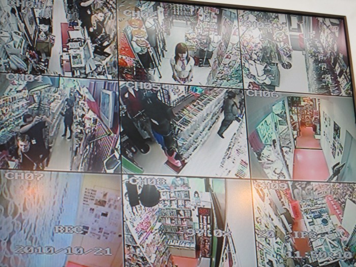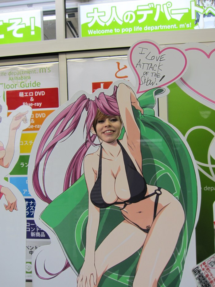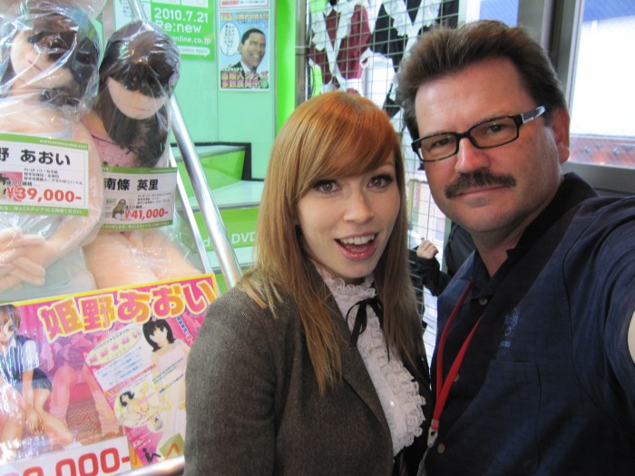 I noticed immediately that the store’s “spy” cameras were shown on a huge monitor above the aisles – all of them showcased on one screen – almost so you could see who else was there. Alex was a real trooper, exploring six floors of japanese adult madness – everything from adult videos to novelties, outfits, and yes, LOVE DOLLS…