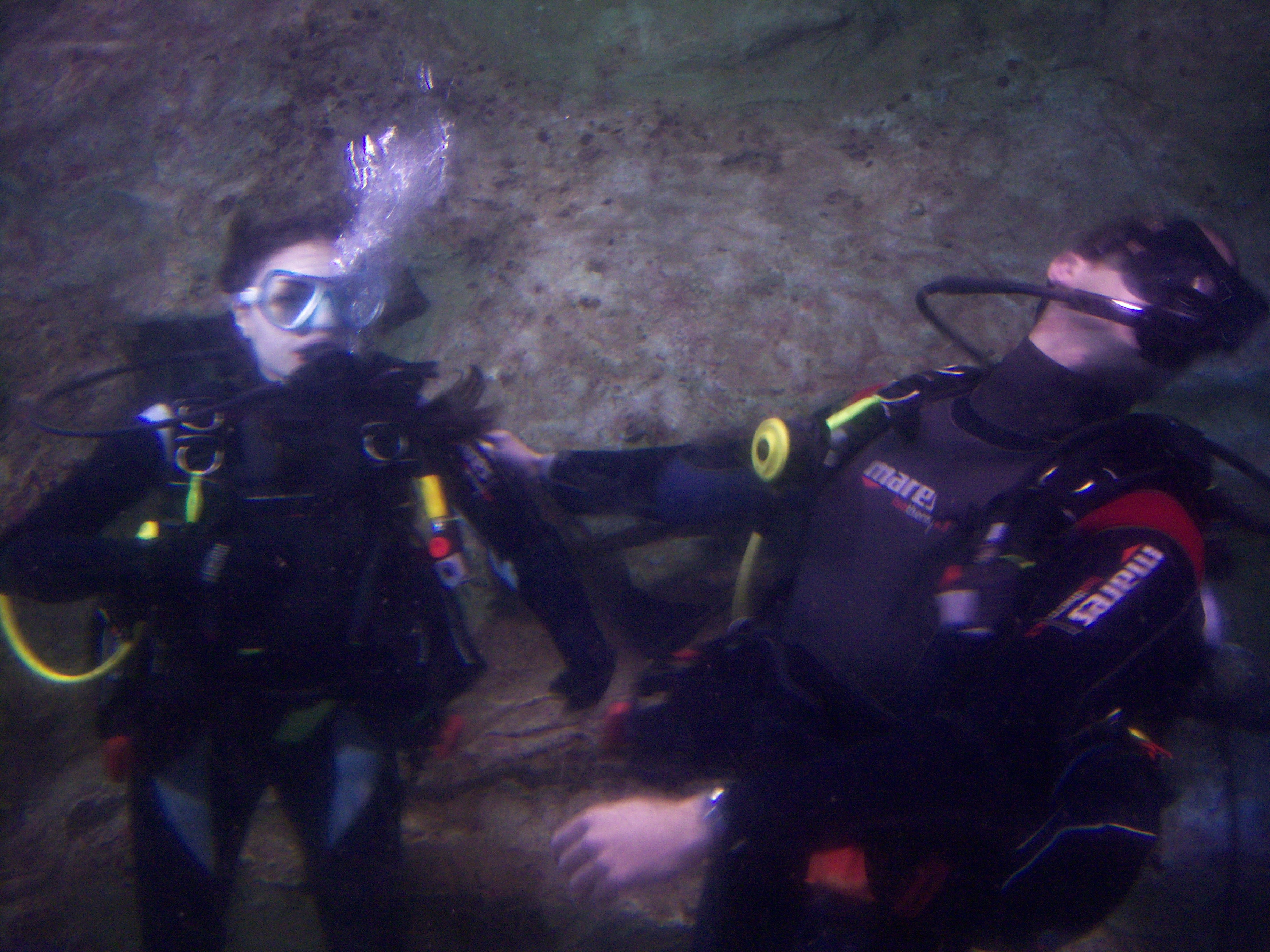 The first thing that happened was Sasha’s dive prep – she had to learn how to breathe underwater – this was her first time with scuba gear…but even though she had never done it before, she was a real trooper…doing a “speed” version of training in a side pool so we could film the segment with the sharks, who were hovering nearby…