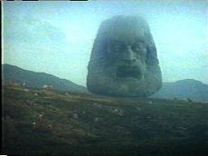And here are the opening lines of the movie….a a huge huge huge stone head floats over the English countryside…