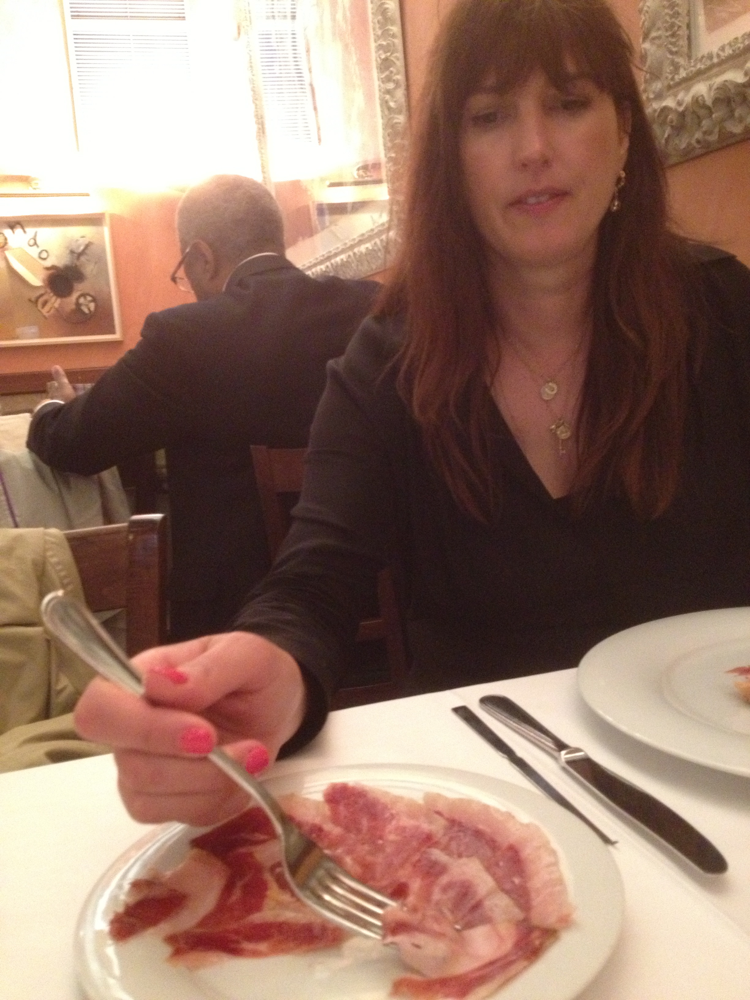 The iberico ham is sliced a bit thicker than here in the US, and the bread is toasted and then rubbed with a raw tomato – fantastic!