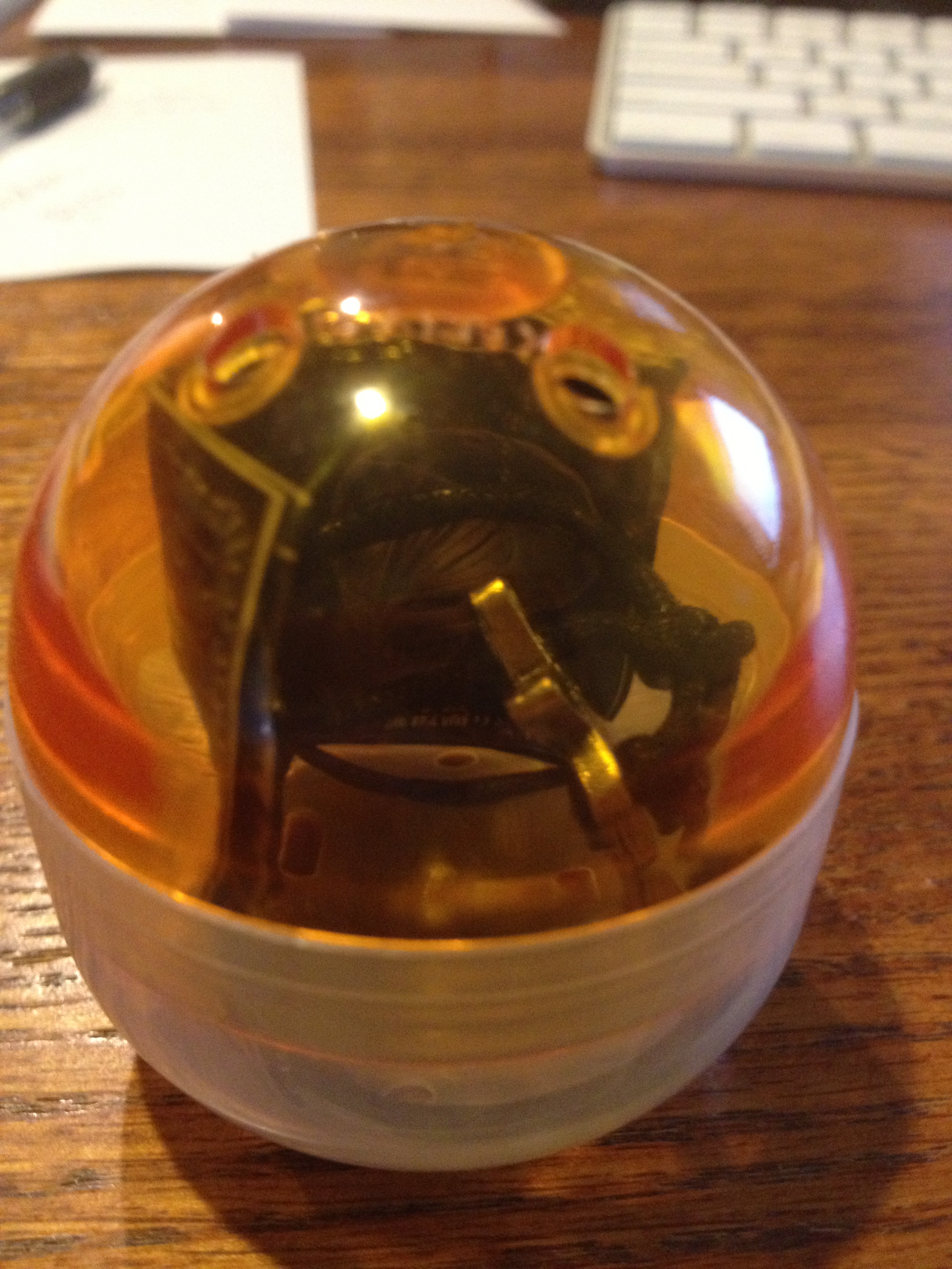This charm was some sort of logo – I also bought one that had a Ninja inside, and another that had plasticized food…you can spend a fortune collecting these cool balls…