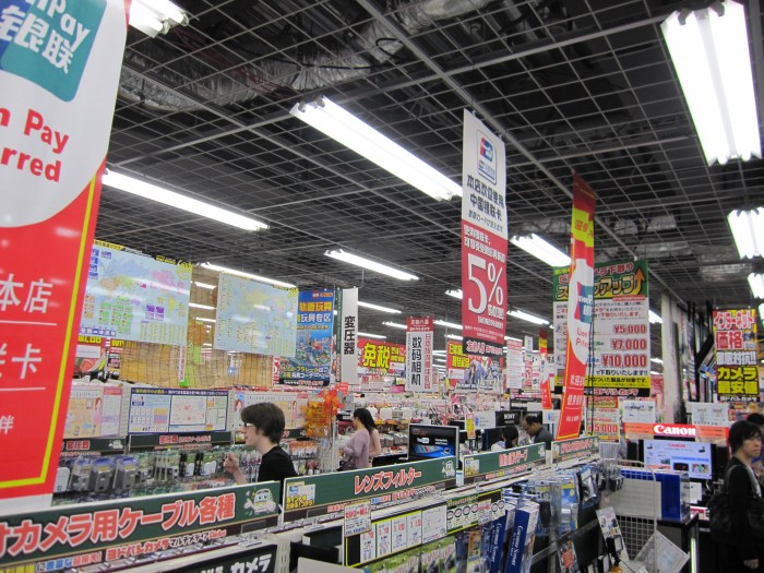 The Akihabara district is known for electronics, which can be found in street stalls and alleyways, as well as in this ten story electronics store – Yodobashi!