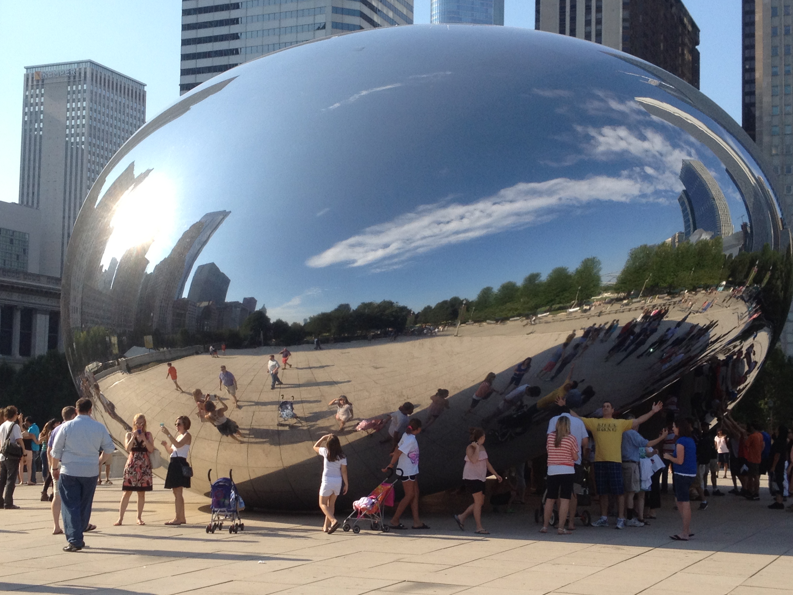 Yes, this is my iPhone cover. I got it in the Akihabara electronics district in Tokyo, in the 10-story electronic store. I love it! For example, look at what happens when I take a picture of “The Bean” in Chicago…