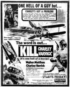 I love this vintage newspaper ad as well – “Charley Varrick” is a pure 70’s action thriller, and it delivers! Speaking of that, here comes Matthau again!