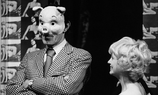 Writer-director Nelson Lyon helmed “The Telephone Book” as a kinky vaudeville revue. When Alice’s obscene phone caller boasts that his talents could seduce the President of the United States and the entire First Family, he suffixes his claim that he would not try it because “I have no political ambitions.” And yes, he wears a pig mask the entire time!