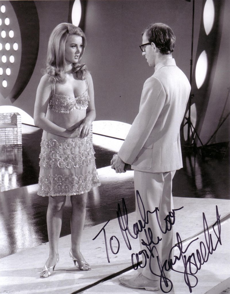 This “all-star” James Bond spoof starred David Niven as Bong, and included a very young Woody Allen, and Barbara Bouchet co-starred as a very sexy Miss Moneypenny! Here she is with Allen, in a movie still I found online that was signed for a fan!