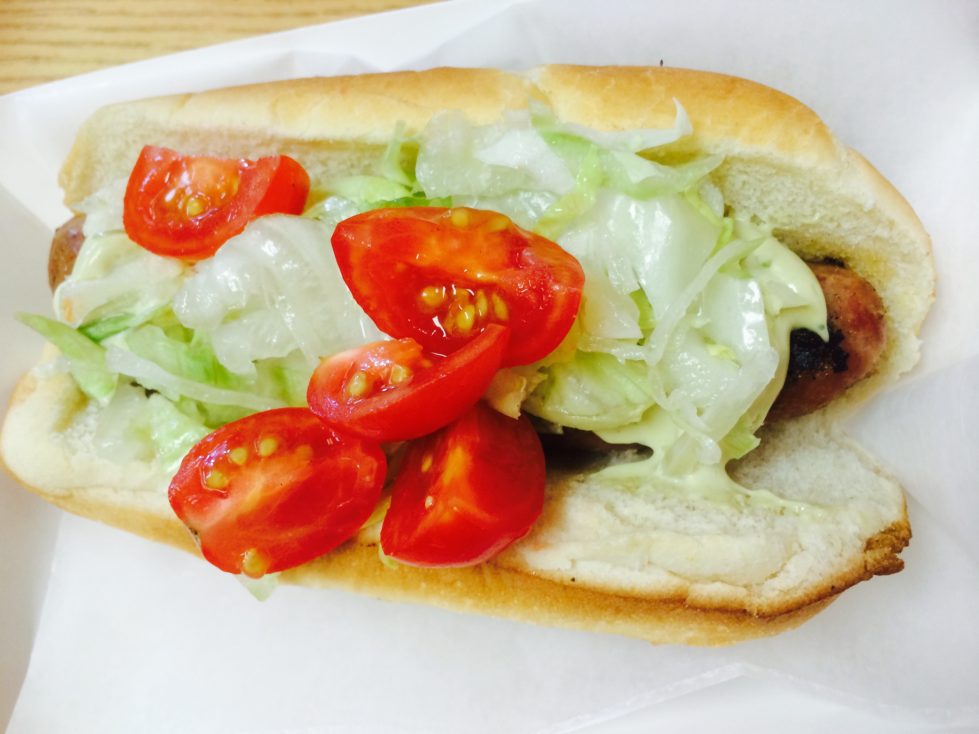 Hot Doug’s B.L.T.: Bacon Sausage with Avocado Mayonnaise, Iceberg Lettuce and Cherry Tomatoes – $9.00