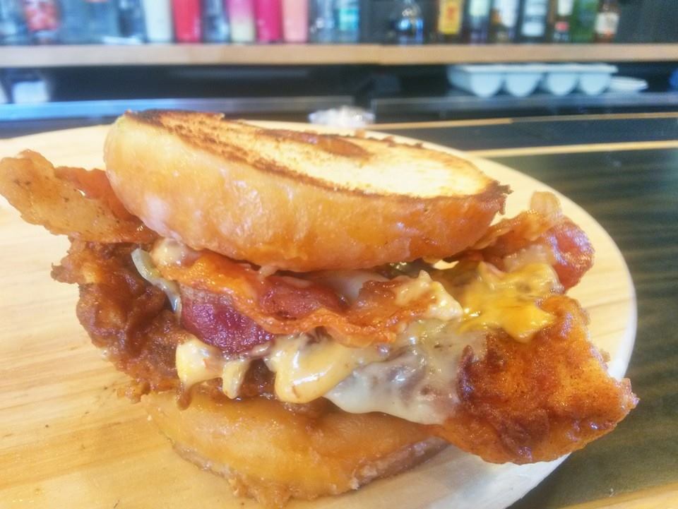 Here is how they describe this masterpiece: “this $13 creation from Philly’s PYT Burger consists of a warm, glazed doughnut filled with a beef patty and American cheese. Bacon sprinkles redefine the concept of “gilding the lily.”