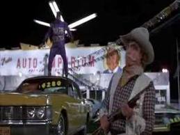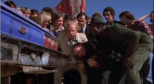 Michael McKean and David Lander (Lenny and Squiggy) have small roles as techno-geeks who jam President Carter’s State of the Union address in order to plug in an ad for the used car lot…by cutting in live from Roy Fuchs’ used car lot across the street, making use of his cars for their “live pyrotechnics”…