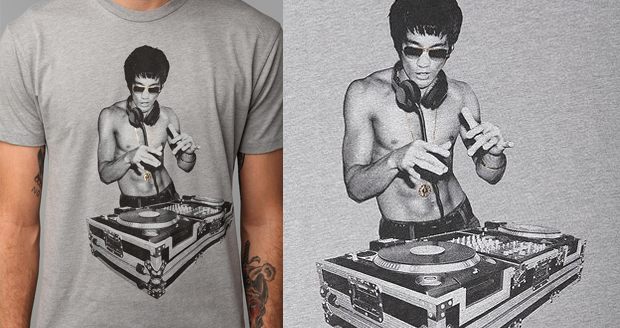 Yep, “Iron Man” is sporting a “DJ Bruce Lee” T-shirt – and I love it! Lee is an iconic action figure, and his work will last forever…oh yes, and you can buy one of these as well!