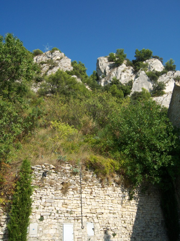 Nestled in the rocks above rolling fields of vines, Gigondas is surrounded by grapes…and when you head into town, there are plenty of shops and restaurants to try their wines…but it is also a beautiful little town to explore – like their many ancient ruins…