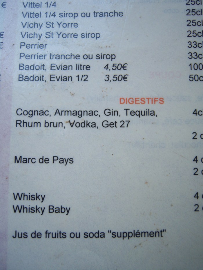 The small village of Seguret is even smaller than Gigondas – but it is still full of restaurants, such as the one that offered this unique option for Whiskey: