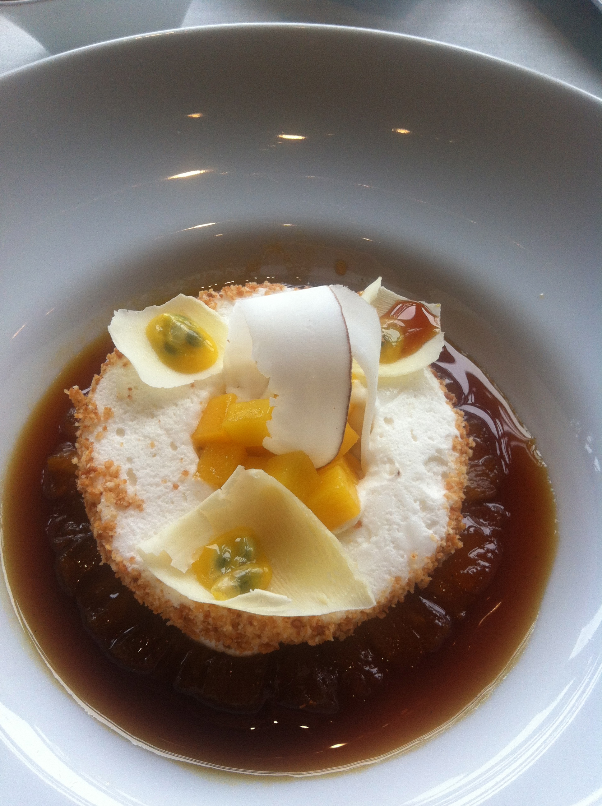 I had their version of a pineapple upside down cake with almond ice cream and fresh sliced coconut…