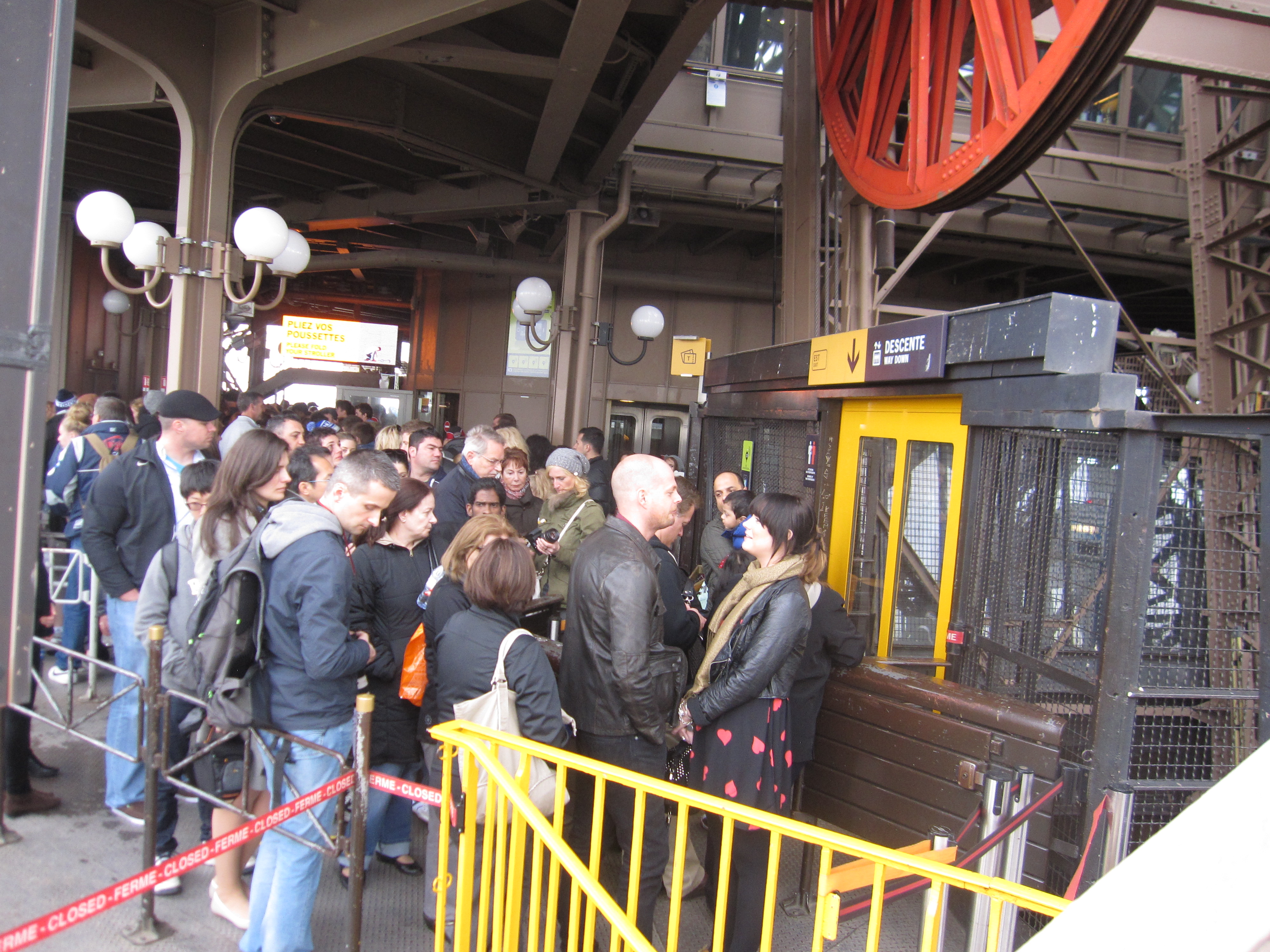 The great thing about eating at Jules Verne is you take a private elevator to the restaurant, and therefore you can avoid the long lines that form to get to the observation deck!