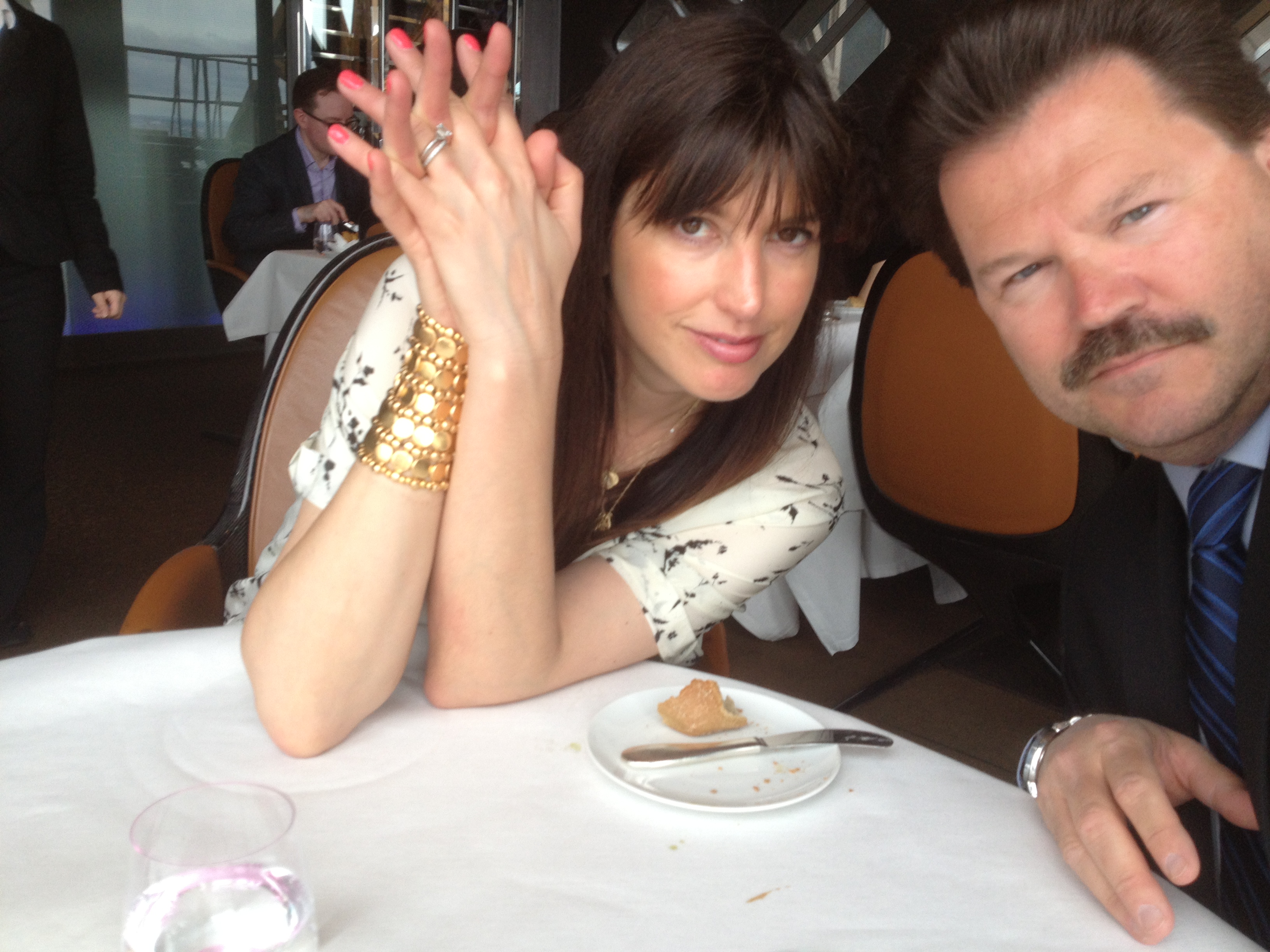 And then you arrive – and Jules Verne is a very beautiful restaurant – very formal and classy…and yes, expensive as well, but the food is terrific – and I am about to show you…here is Alex as we waited for a glass of champagne…