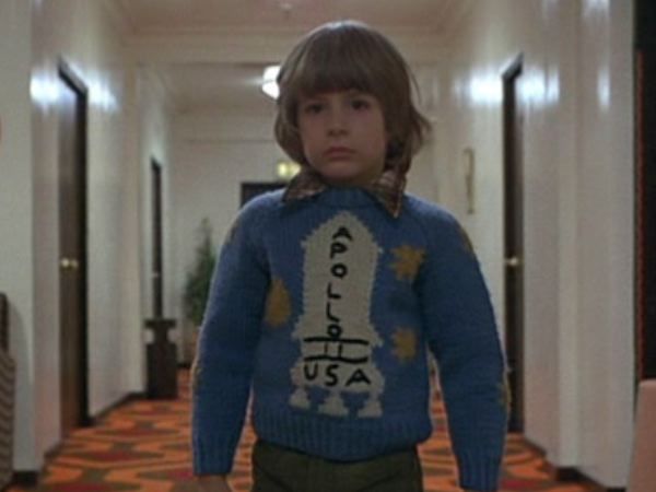 My favorite is this: the knitted Apollo 11 sweater worn by Danny Torrence and the particular design of the carpet was Kubrick’s apology for having supposedly shot the 1969 moon landings – a huge “fake” lunar landing to coverup the fact that we never went to the moon!