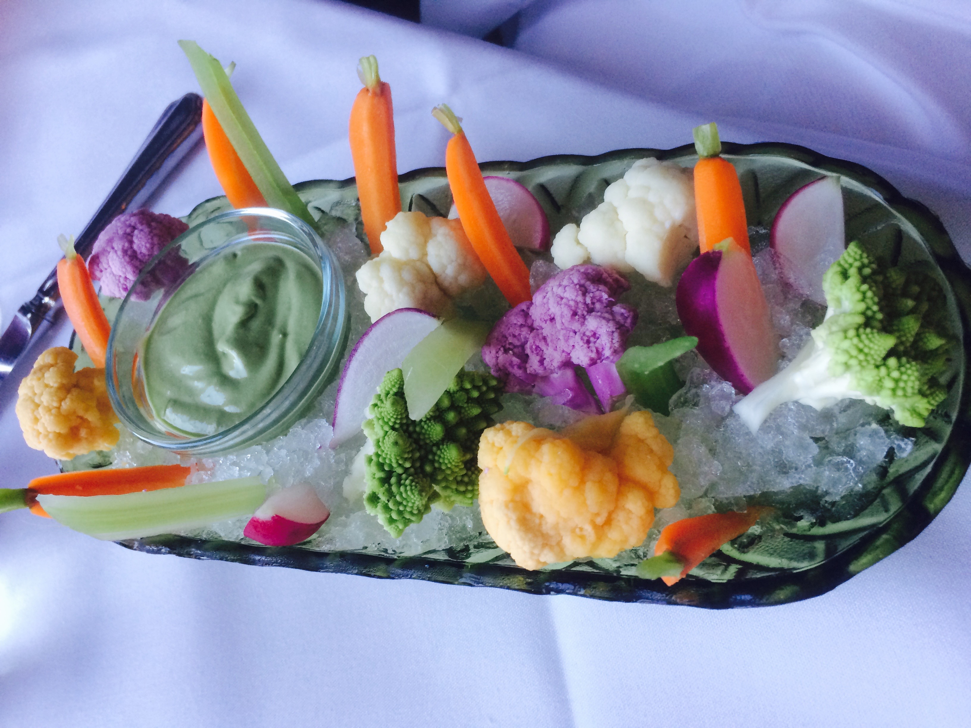 My wife had a collection of fresh crudite, served with a classic Green Goddess dressing…