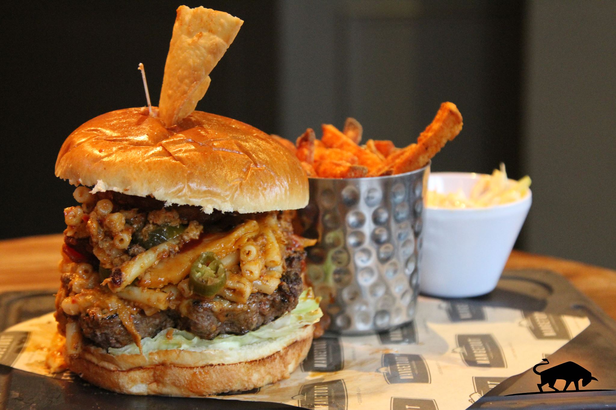 Yep, Magetout proudly unveiled this homage to Texas: an 8oz Steak Burger topped with our Chilli Mac n Cheese, Smoked Streaky Bacon, Onion Rings, BBQ Sauce, finished with melted Mexican & American Cheese. Served with Sweet Potato Fries & Coleslaw.