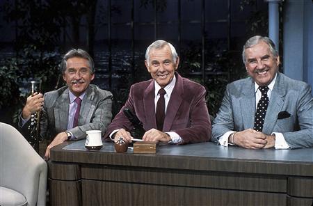 “The Tonight Show with Johnny Carson” host Johnny Carson (C) poses with band leader Doc Severinsen (L)and sidekick Ed McMahon, in an undated photo. REUTERS/NBC/Handout
