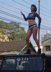 This picture taken on January 3, 2017 shows a pole dancer performing on top of a jeep during the funeral procession of former Chiayi City county council speaker Tung Hsiang in Chiayi City, southern Taiwan.