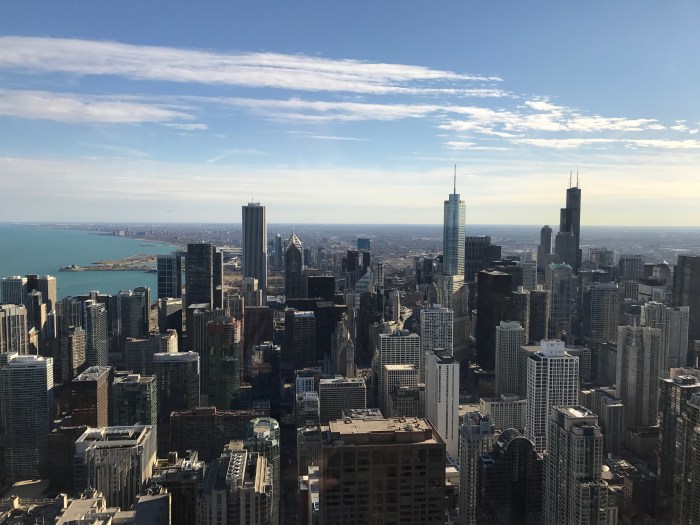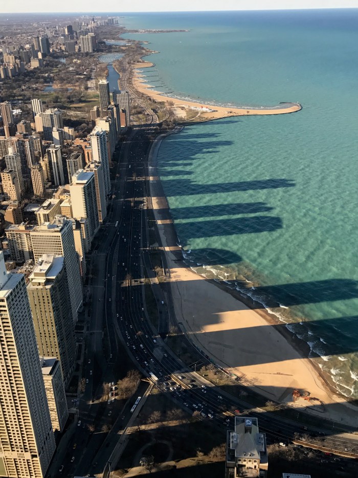 The “Windy City” has so many great things to offer – like this spectacular view of the downtown area from 91 stories high – at the John Hancock Tower just north of Chicago’s famed “Loop” – and that building also offers a spectacular view of Lake Michigan and many of Chicago’s terrific beaches: