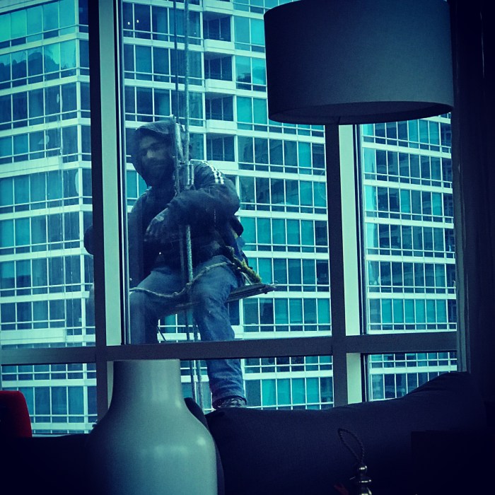This is just one of the dangerous jobs I wouldn’t want – here’s another one – a skyscraper window washer – like this guy outside our window: