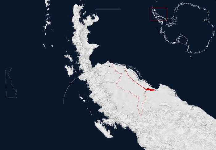 “A growing rift on the floating Larsen C ice shelf on the Antarctic peninsula — a rift that grew dramatically by another 11 miles last month, according to a team of scientists watching it closely — is setting the shelf up for an imminent loss of nearly 2,000 square miles of ice, these scientists say. That’s larger than Rhode Island and almost as big as Delaware.”