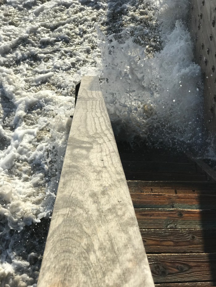 Because of the upcoming full moon, the waves are larger than usual, and the high tide created some amazing water action at the steps leading to the beach!